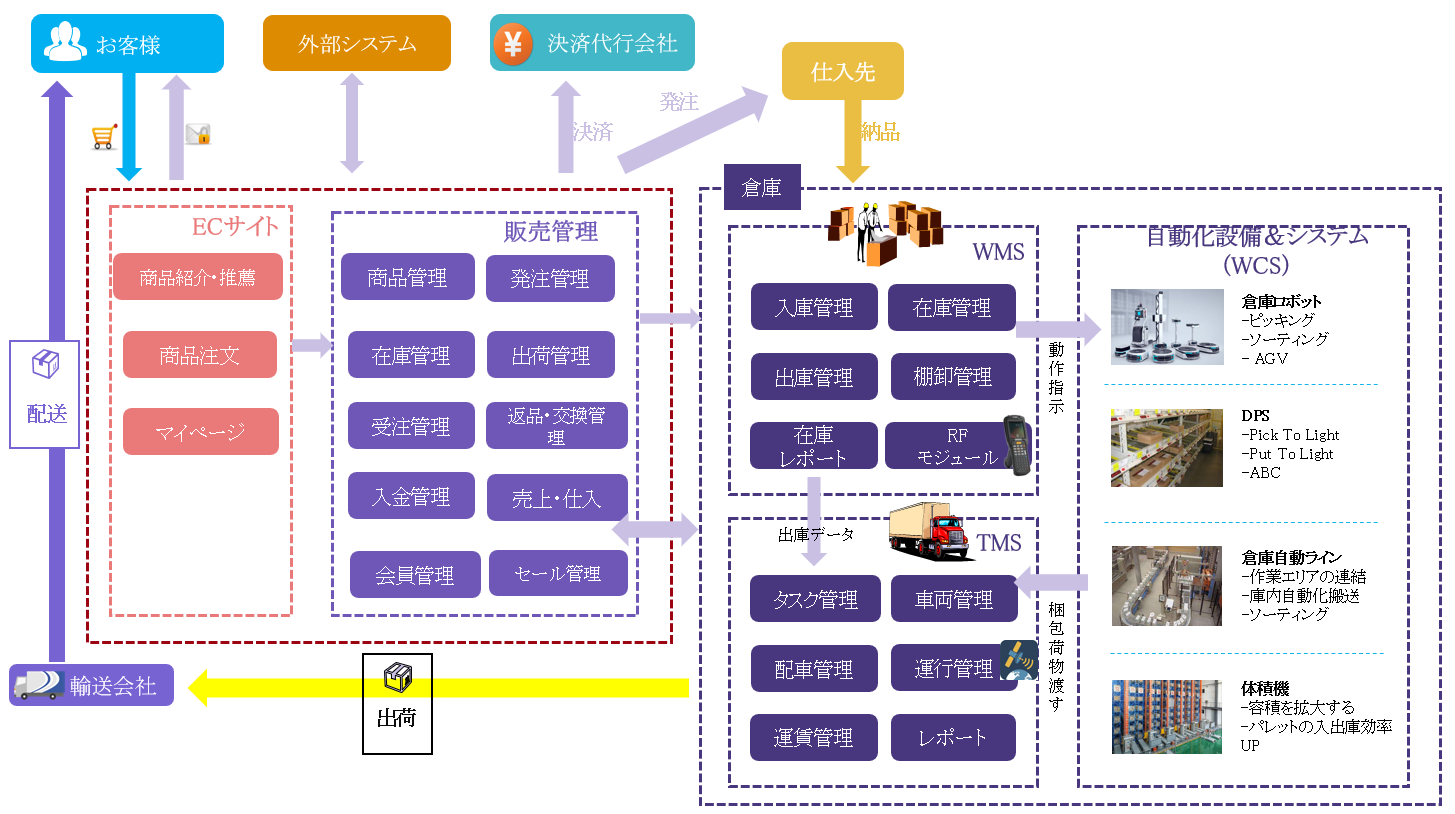 流通業界向けのECサイトと販売管理システムの構築提供例です。