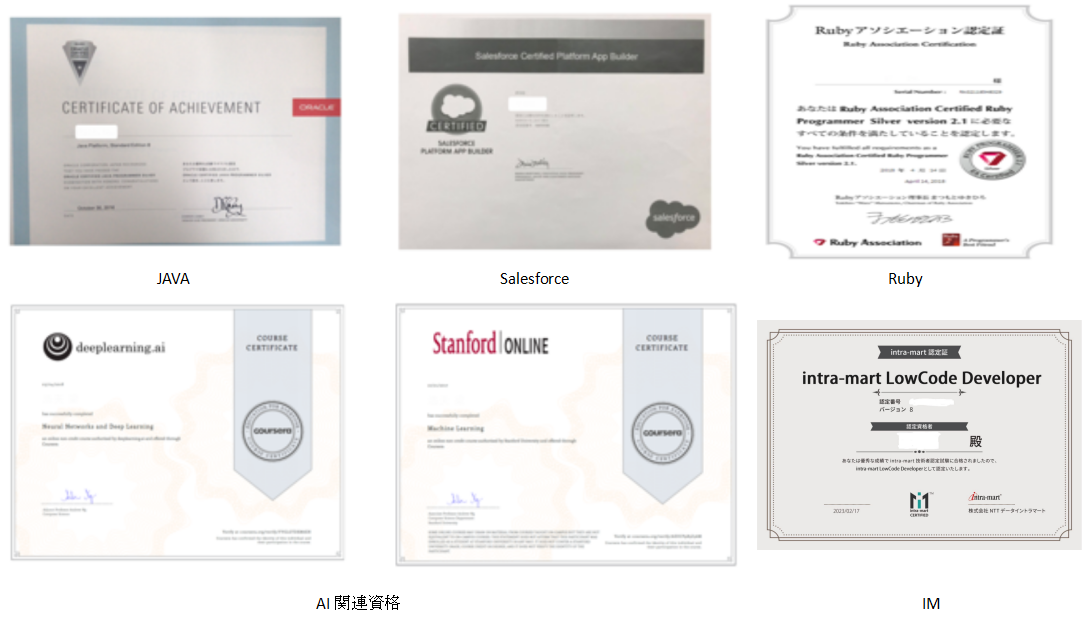 ・社員の日本語力と技術力をアップさせるため、毎週社内で日本語教育と技術教育(ジャワ オーペン系)を実施しています。 ・経費の会社負担及び奨励金制度によって各種資格の取得を全力でサポートしています。 ・JAVA以外にも最新技術(Salesforce、AI、Iotなど)も研究して、資格を取得しています。